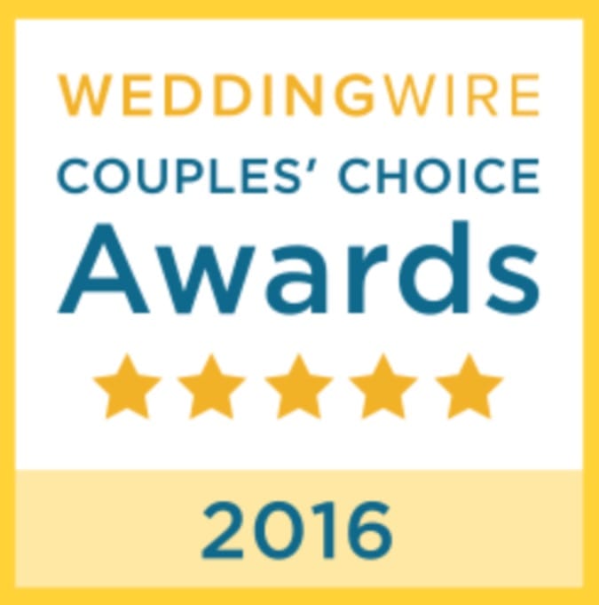 The WeddingWire Couples’ Choice Awards® 2016 recognizes the top five percent of wedding professionals in the WeddingWire Network who demonstrate excellence in quality, service, responsiveness and professionalism. The esteemed awards are given to the top local wedding vendors in more than 20 service categories, from wedding venues to wedding florists, based on their professional achievements from the previous year.