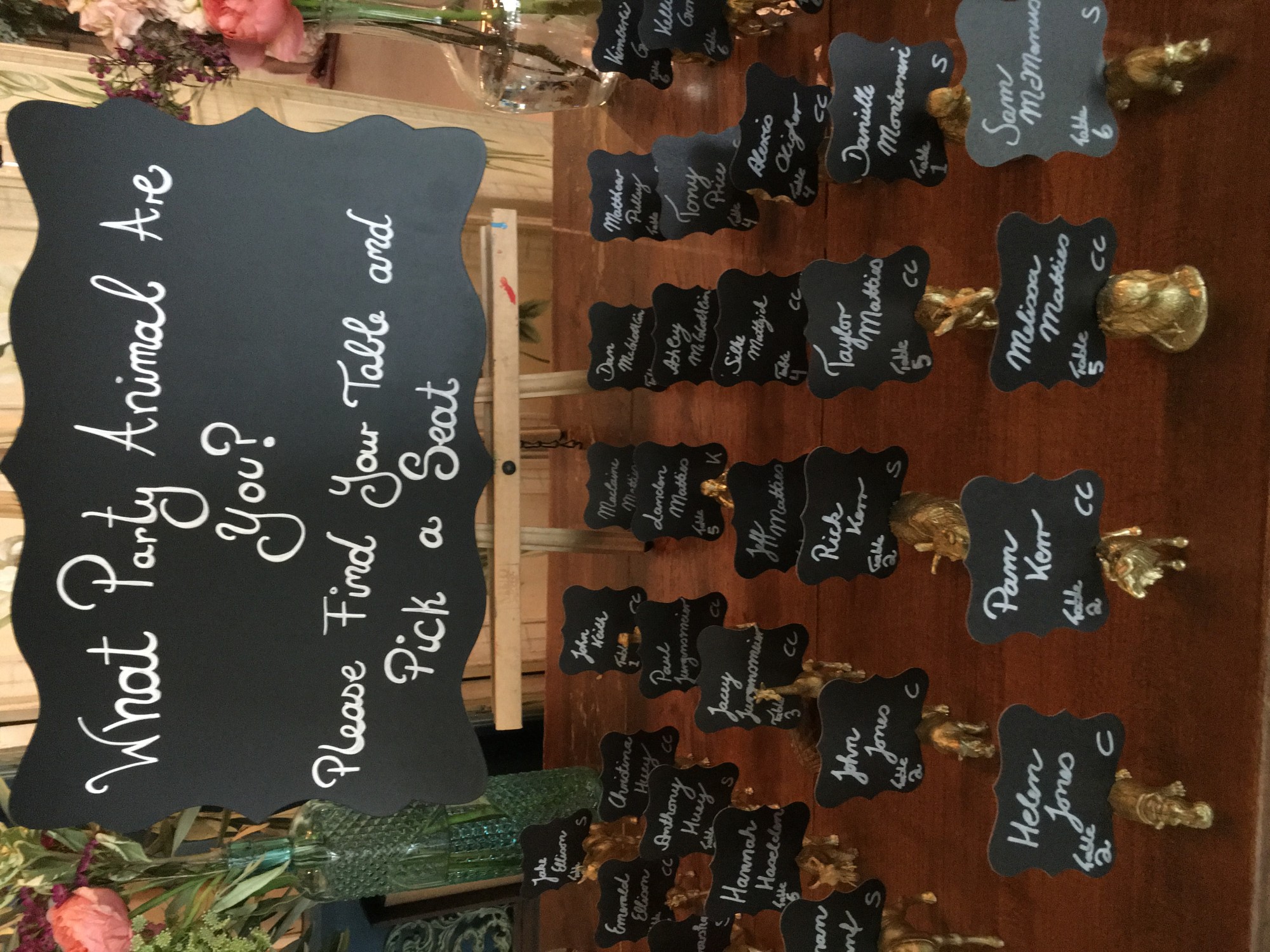 Danielle and Jimmy’s reception was at the Soho South Café. It was the perfect place for their reception.  Danielle  had so many great details in her wedding reception! Starting with the cutest escort card holder I had ever seen, golden animals displayed the names of their closest friend sand families guiding them to their tables!