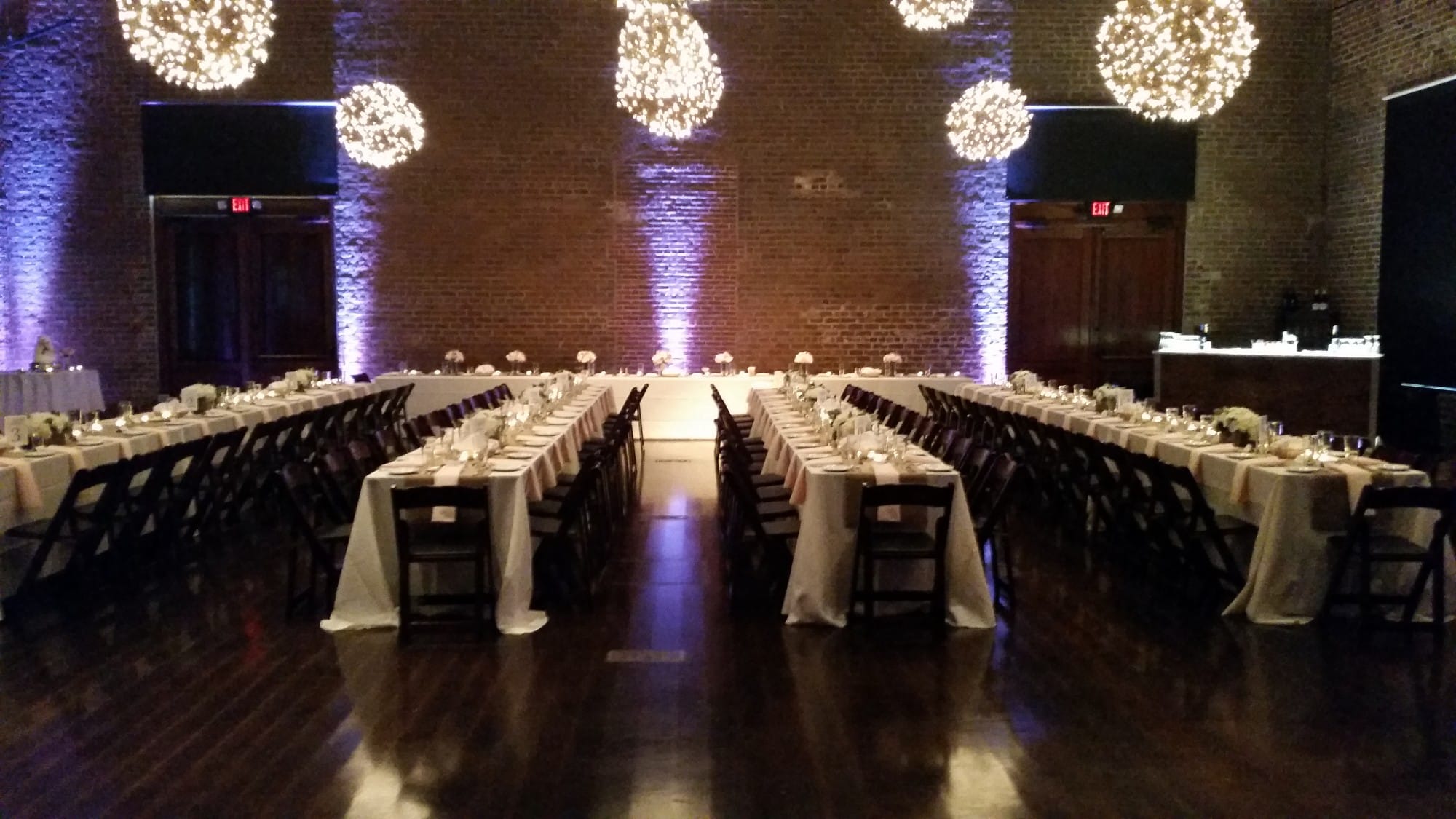 They chose the beautiful Charles Morris Center for their reception. Vanessa Saturday of Spectacular Saturdays and her team did a wonderful job transforming the Venue into an elegant ballroom with banquet style seating. There were so many great elements in their reception including an awesome S’mores bar from Cape Creations and a Cuban Cigar bar on the back terrace! We accented the room with white uplights, which brought a soft glow to the room.